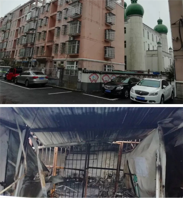棚内车辆和车棚边南北两侧六层住房遭殃